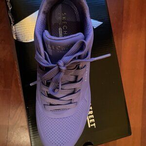 These comfy shoes have air cooled memory foam and come in an awesome purple. They have been worn once and are in excellent condition.