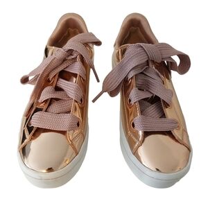 Good used condition. Unique rose gold sneakers with mauve laces. Has air cooled memory foam technology.