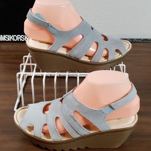 Skechers Stylin Blue Suede Peep-toe Slingback Wedge Size 6½