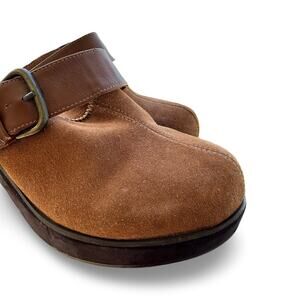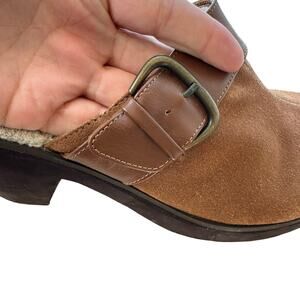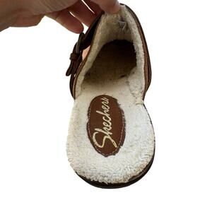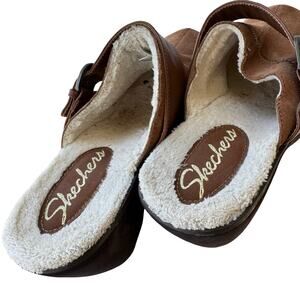 Skechers Suede Clog Mules Women’s 10 Chestnut Brown Lined Buckle Heel Y2K
