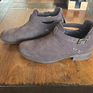 Cute ankle boots with zippered heel and cute little stitch detail on the side. EUC