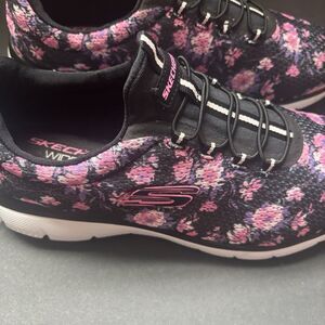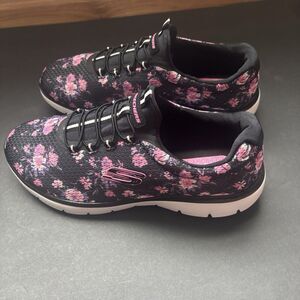 #Skechers #WideFit #MemoryFoam #FloralSneakers #WomensWalkingShoes #AirCooled #Athleisure #ComfortShoes