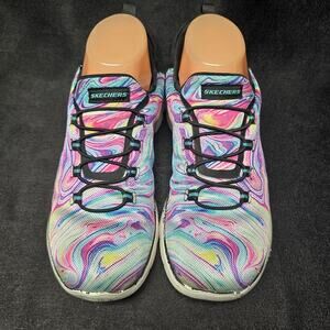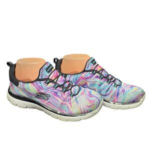 Skechers Summits Brilliant Dreamer Slide On Shoes. Inside the shoe there is a hole, overall good condition with signs of ware.