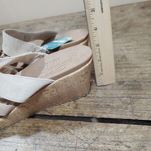 Skechers Women's Sz 12 Sandals Cream Wedge Shoes Cali NWT Luxe Foam 32953. No box or price tag. Smoke free home. Please see photos.