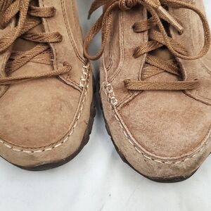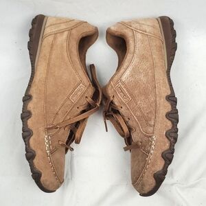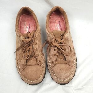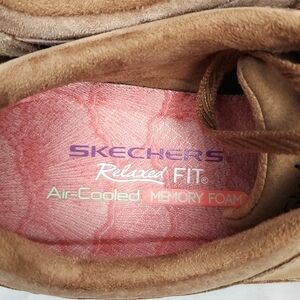 Skechers Tan Suede Leather Sneaker. Lace up. Relaxed fit air cooled memory foam insole. Good condition, some wear to suede as shown in pictures. Size 7.
