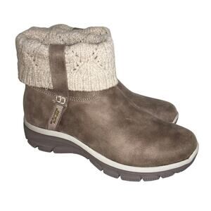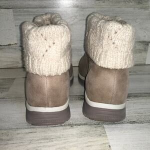 Chic Skechers ankle boots. Taupe suede with a warm knit cuff. Ideal for everyday comfort.