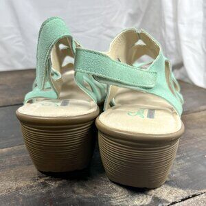 Skechers Teal Suede Parallel Stylin leather Wedge Sandals Women's Size 11