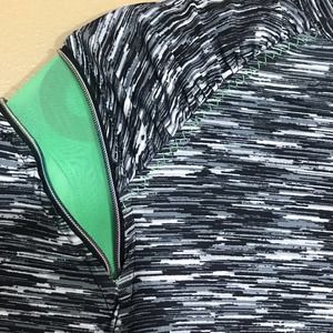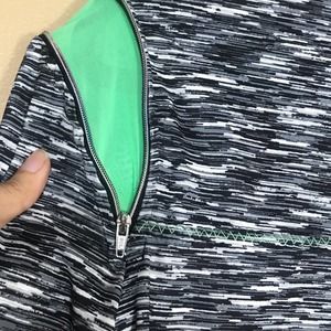 Black/White with green mesh at neckline and inside kangaroo pocket