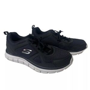 Skechers Track Scloric 52631W Running Shoes Sneakers. Item is good preowned condition. It is a second hand item. Please see pics for details. Size 10.5. Color is black.