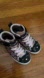 Sparkly sneakers with heart design. Features glittery finish and cat detail. Perfect for fun outings.