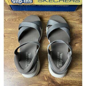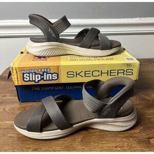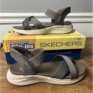 Skechers Ultra Flex 3.0 Sandals 9.5 Taupe Knit Never Better Hands Free Slip-Ins