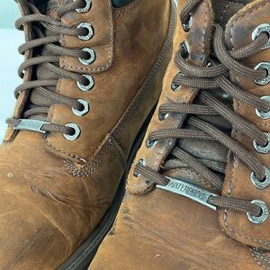 Leather with typical signs of general use - some wrinkling and leather patina, but nothing major - great looking boots!