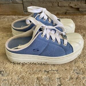 Skechers Vintage Y2K Platform Sneakers Backless Slip On Chunky Blue Glitter: 8