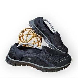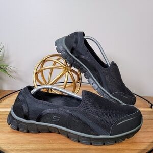 Skechers Walking Slip on Relaxed Fit Memory Foam Air Cooled Black Flats Size 10