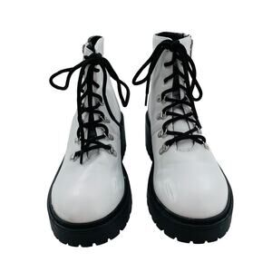 Skechers Weekend Best White Memory Form Lace Up Side Zip Combat Lug Boots 7.5