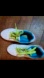 SN 155184 mostly white, pink on the heel, blue interior, green shoe laces