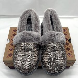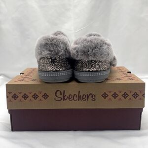Skechers Woman's Cozy Campfire Pewter Dream Glam Metallic Faux Fur Slippers