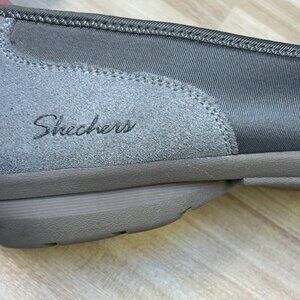 Skechers Women 8.5 Career 9 To 5 Comfort Shoes Taupe Suede Memory Foam Slip on