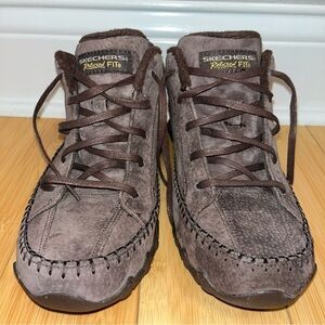 Skechers Women Size 9 Bikers Pole Relax Fit, memory Foam, Suede Leather Brown Chocolate Shoes, excellent condition, great for casual wear, outdoor hiking or walking,
