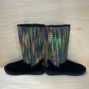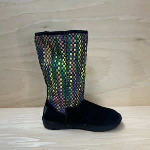 Skechers Womens 48622 Leather Mid Calf Round Toe Multicolor Winter Boot Size 7