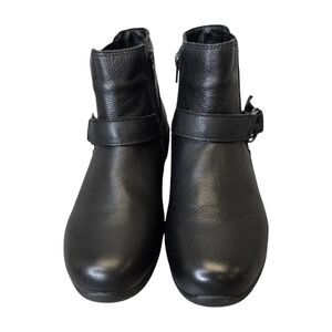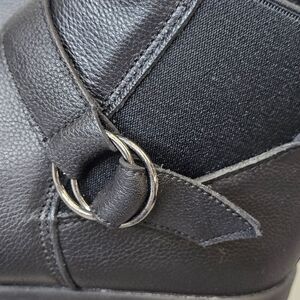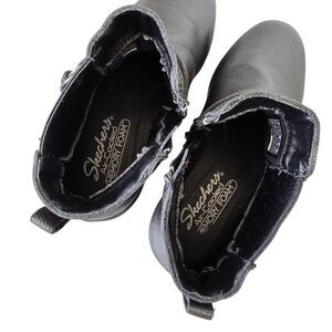 Skechers Womens 6 Arya Mod Squad Black Air-Cooled Memory Foam Leather Ankle Wedge Booties. Fabric lining. Removable Skechers air-cooled memory foam cushioned insole. Zipper closure. Strap and double-ring buckle detailing. Heel pull tab. Round toe. Very comfortable.