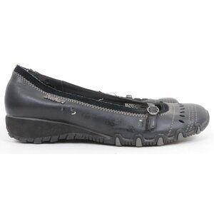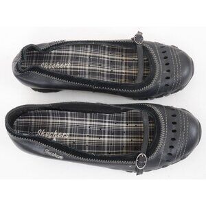 Skechers Women's 8.5 Black Leather Skool Girl Mary Jane Slip On Wedge Shoes