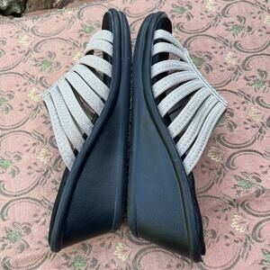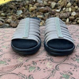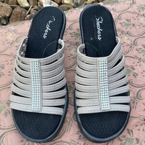 Skechers Women’s 9 Rumblers Hot Shot Tan Rhinestone Wedge Sandals Memory Foam