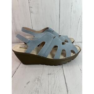 Skechers Women's 9.5 Light Blue Leather Suede Wedge Sandal Parallel Stylin NWOT