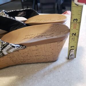 Skechers Women's Beverlee Palace Slip On Wedge Sandals Black/Gold Size 9.5
