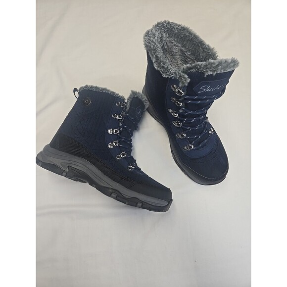 Skechers Women's Boots Size 6.5 Trego Winter Hiking Waterproof Blue Black Fur