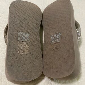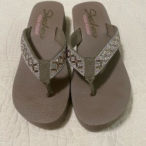 Elegant Skechers sandals with sparkling rhinestones. Comfortable and stylish for everyday wear.