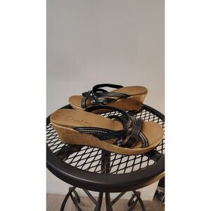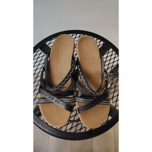 Skechers Women's Cali Luxe Foam Black Strap Wedge Sandals Size 9
