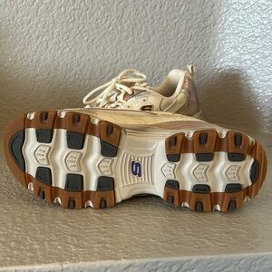Skechers Women's D'Lites - Vintage Vision Sneaker Natural/Gold Size 9