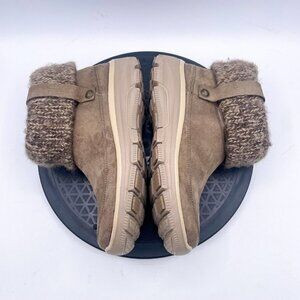 Skechers Womens Easy Going Heighten Foldover Collar Ankle Bootie-Taupe-Size 6