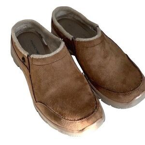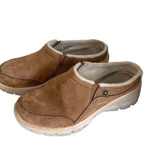 Skechers Womens Easy Going Memory Foam Slip On Open Back Mule Shoes Tan Size 7.5