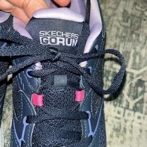 Stylish navy athletic shoes with purple accents. Comfortable and perfect for workouts. Excellent condition