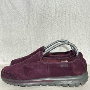 Skechers Womens GOwalk Winter Memory Foam Wine Suede Slip On Casual Shoes SZ 8.5