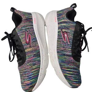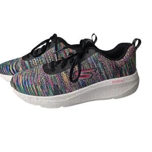 Skechers Womens Go Run Elevate Electric Flow Black Knit Running Shoes SZ 7.5