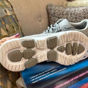 Stylish and comfortable Skechers sneakers. Ideal for daily activities. Made by Skechers style called go walk 5 true gray textile uppers very comfortable sneakers laces up. More than one time in excellent condition comes with box. Retail $68. Sz 7 m ladies.