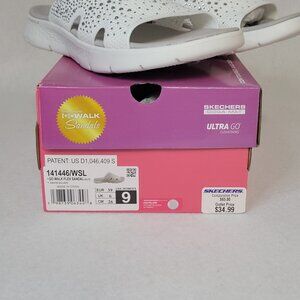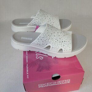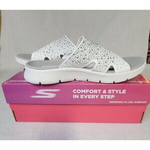 Skechers Womens Go Walk Flex Slide Sandals Size 9 White Rhinestone Comfort