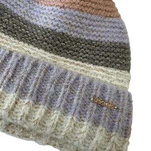 A cozy, season-perfect acrylic-blend hat. In a colorful stripe pattern. Warm and versatile. The perfect finishing touch.