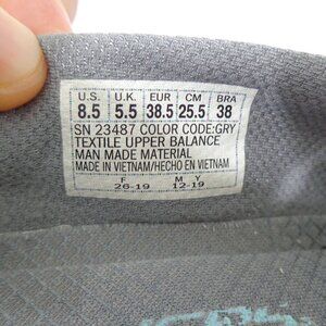 The solid grey color and logo accents add a stylish touch to this standard-sized shoe made with a blend of fabrics and textile upper material.