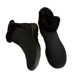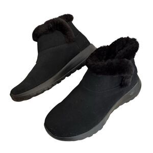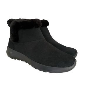 Skechers Womens On The Go Black Suede Pull On Winter Ankle Boots Faux Fur Size 7