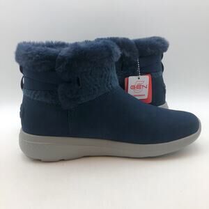 Skechers Womens On-the-GO City Suede Boots 9 WIDE Navy Blue Water Repellent NIB