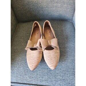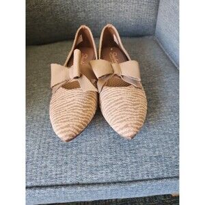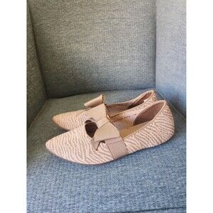 Skechers Women's Pink & Taupe Brown Stripes Pointy Toe Flats w/ Bows Size 8.5