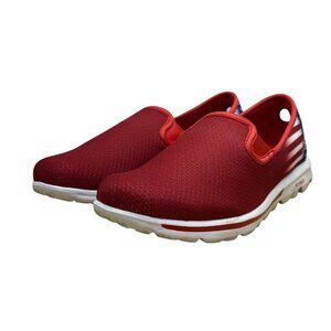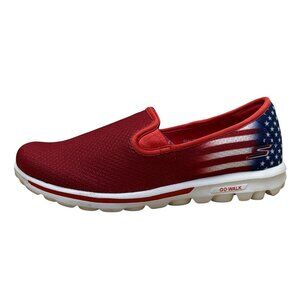 Skechers Women’s Red With American Flag Design Go Walk Slip-On Shoes Size 8
