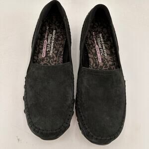 Skechers Women's Relaxed Fit Air Cooled Memory Foam Black Suede Moccasins Biker Slip On Sneakers Size 8