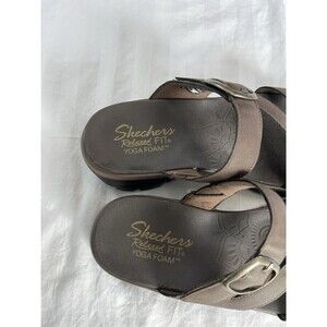 This listing is for a pair of Skechers Yoga Foam Easy Going Slide on By sandals size 8