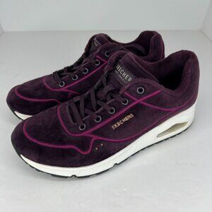 Skechers Womens SN73669 Purple Uno Plum Fuzz Lace Up Size 8.5 Sneakers