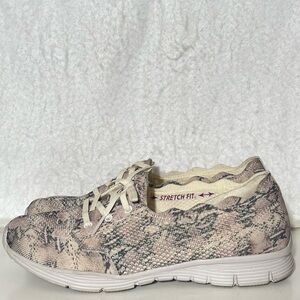 Skechers Women's Seager Snake Print Knit Washable Casual Comfort Sneaker Shoes. Color: Snake Print. Preowned Condition - refer to pictures for description of shoes. No rips or tears. Smoke free.